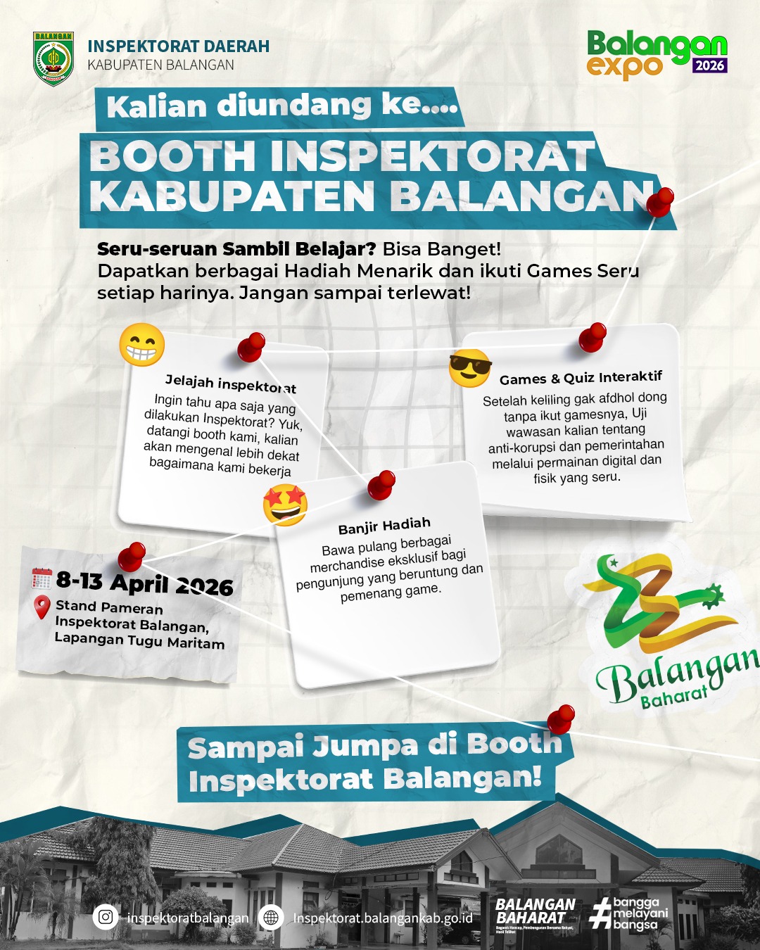 Haiii...!!!Kalian diundang ke Booth Inspektorat Kabupaten Balangan.Seru-seruan sambil belajar? ...