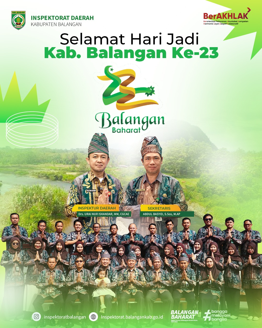 INSPEKTUR : Dengan bertambahnya umur Kabupaten Balangan, tentu jadi momentum bagi kita semua untuk merefleksikan pengabdian, memperkuat integritas, dan memantapkan langkah menuju tata kelola Pemerintahan yang lebih akuntabel dan transparan. SEKRETARIS :Semangat Perubahan harus terus kita kobarkan, demi mewujudkan pelayanan publik yang lebih prima dan pembangunan yang berkelanjutan bagi seluruh masyarakat balangan sesuai dengan slogan "BALAN...... Baca Selengkapnya